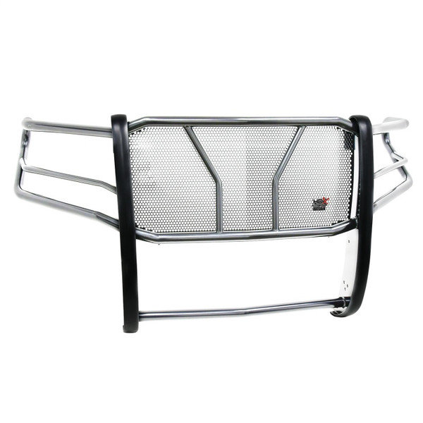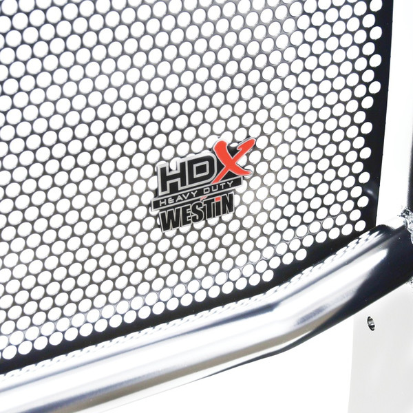 The HDX Grille Guard is the ultimate in extreme truck gear. Its a fully welded 1-piece grille guard that features full wraparound wings made of heavy duty 2in. diameter tube. Uprights are finished and protected with extra wide rubber that is 1/8in. thick and 2 3/4in. wide resulting in a solid clean look. The full punch plate grille protects the vehicles grille area. HDX Grille Guards are available in stainless and black powder coat finish.