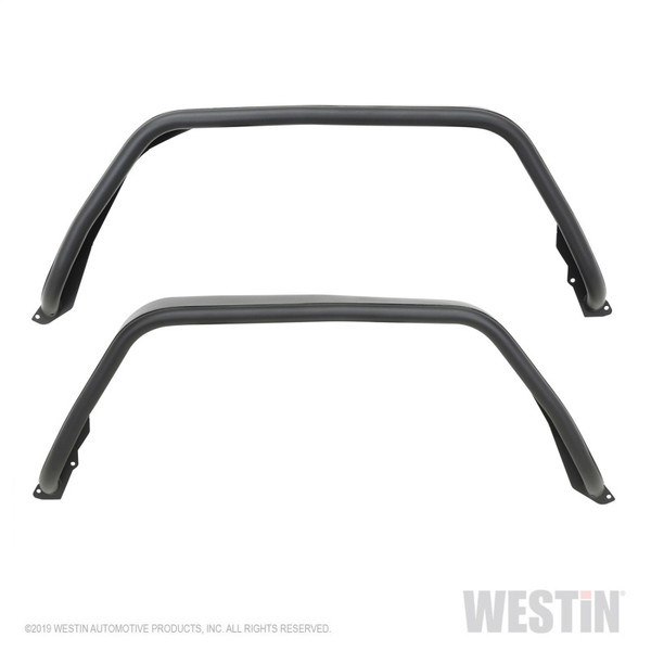 Westin Snyper Tubular Front Fenders are made to protect from flying debris and provide a high clearance for Jeeps riding on large tires. Made of textured black powder coated 14 gauge 6 7/16 wide steel with a 1.5 diameter welded fender tube. Fenders feature a welded lip design to keep plastic inner fender in place. Fender welt is included for a finished look. Turn signal lights are included and housed within the fender tube. All needed installation hardware is included with this bolt-on no drill installation. Sold in pairs. Snyper Tubular Rear Fenders available sold separately.