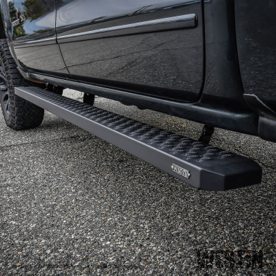 Westins Grate Steps Running Boards are engineered to provide maximum traction without sacrificing style. The 6 1/4in. step surface width features an aggressive 1/4in. high punched tread allowing traction in any weather condition. The unique serrated edges help clean dirt, snow and mud off your boots to keep truck cab clean. Grate Steps Running Boards feature stylishly formed and fully welded ends with a custom die-cast riveted logo badge. E-coated base coat provides long lasting corrosion protection which far surpasses that of the competition. Solid 1-piece construction makes the Grate Steps Running Boards ideal for construction, commercial, vans and utility use. Available in universal lengths (54in., 68in., 75in., 79in., 83in., 86in. and 90in.) with vehicle specific mount kit required, sold separately. Available in textured black finish.