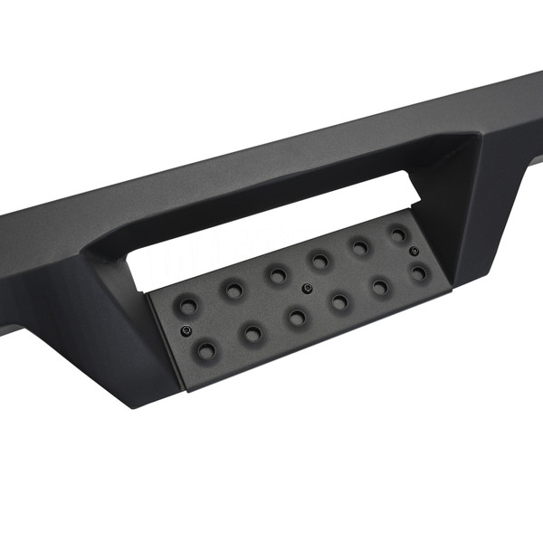 Westins HDX Drop Nerf Step Bars provide the rugged look and function that truck owners need and want. They feature a solid 1-piece steel construction and heavy duty punch plates creating high traction step areas. The HDX Drop Nerf Step Bars also feature Westins notched bar design which provides more than 2in. of additional toe/heel placement versus competitive brands. Available in a textured black finish that complements Westin HDX Bumpers. The HDX Drop Steps have vehicle specific applications and include a vehicle specific mount kit, installation hardware and instructions.