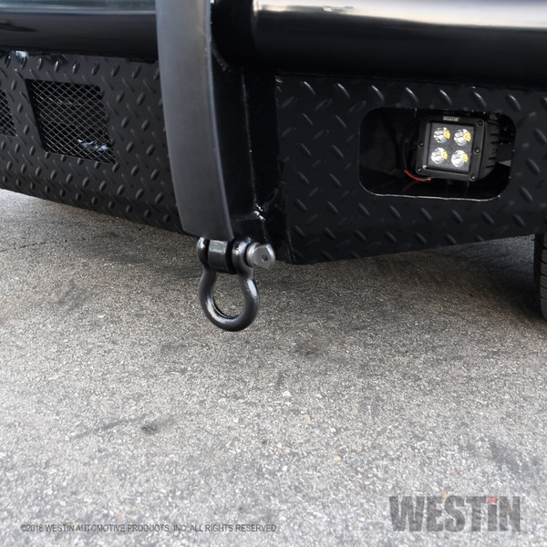 Removable mesh screens allow for factory camera and adaptive cruise control options available on some late model Ford applications. HDX Bandit Bumper includes a built-in 2in. receiver hitch and (2) heavy duty 9,500 lbs bow shackle mounts, capable of delivering multiple towing options. Compatible for factory fog lamps or LED post mount lights. In addition, some late model Ram and Chevrolet applications feature provisions for factory parking sensors. Bolt-on installation with hardware and mounting brackets included. Available in black powder coat finish.