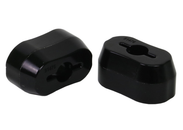 The pitch stop mount to assist in controlling the engine and drivetrain forward and aft twisting motion. The pitch stop is inherently soft due to the high compliance rubber bushing design and was built for comfort and not responsiveness or feel. Whiteline's pitch stop mount bushing is built to handle the demands of high torque and power output engines by limiting the amount of movement the engine and drivetrain will place upon the pitch stop. Utilising low compliance bushing technology this eliminates the slop, twisting and shudder found in the OEM rubber bushings allowing for a faster, positive, responsive feel of power delivery on and off the throttle.